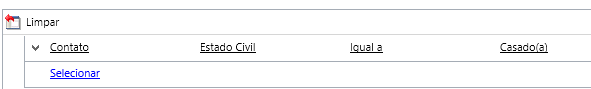 Uma nova tela será apresentada, é muito parecida com uma Localização Avançada, devemos escolher o(s) atributo(s) que serão validados, neste exemplo utilizei se o “estado civil” for igual a “casado”: