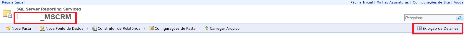 Navega no browser pela URL do Reporting Services, selecione a sua Organização CRM e clique em “Exibição de Detalhes”