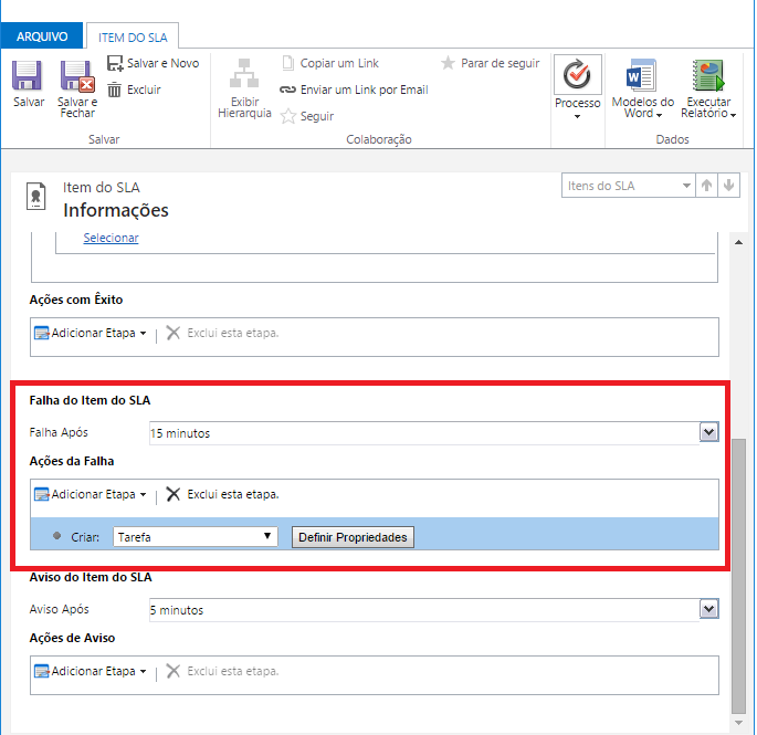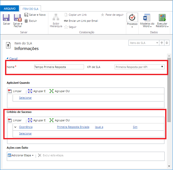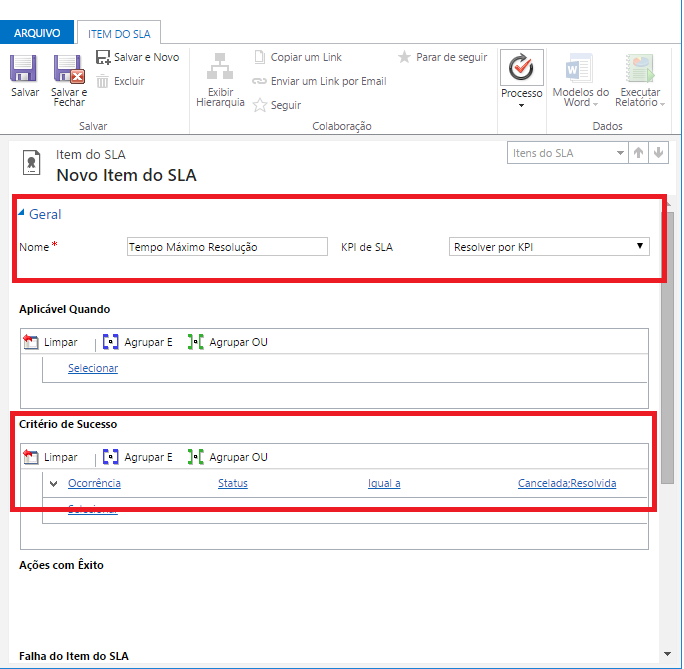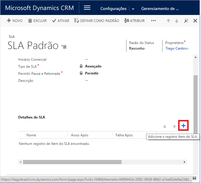 Após a obtenção das respostas acima, chegou a hora de criar nosso item de SLA!