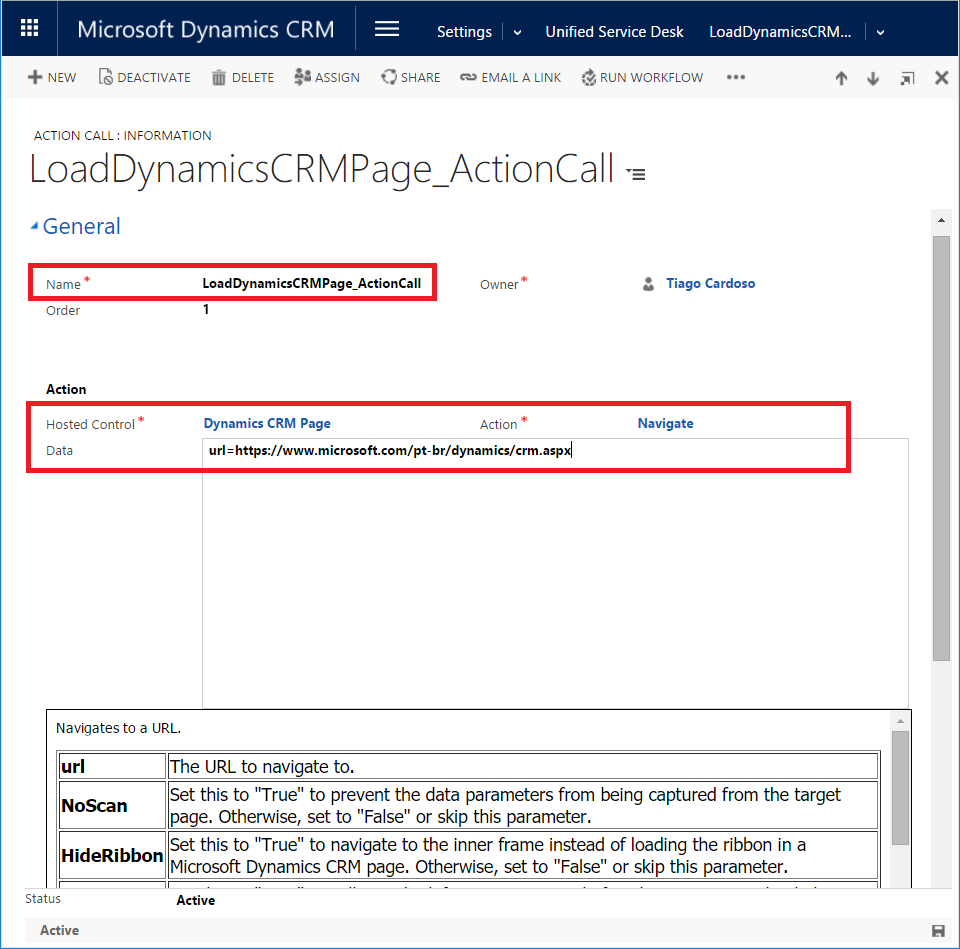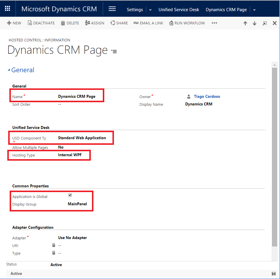 Em muitas ocasiões queremos apresentar um página do Web dentro do USD, o processo é basicamente o mesmo de uma CRM Page, apenas o tipo do hosted control deve ser alterado. Devemos criar um hosted control (Configurações > Unified Service Desk > Hosted Controls > Novo). Devemos informar obrigatoriamente informar: