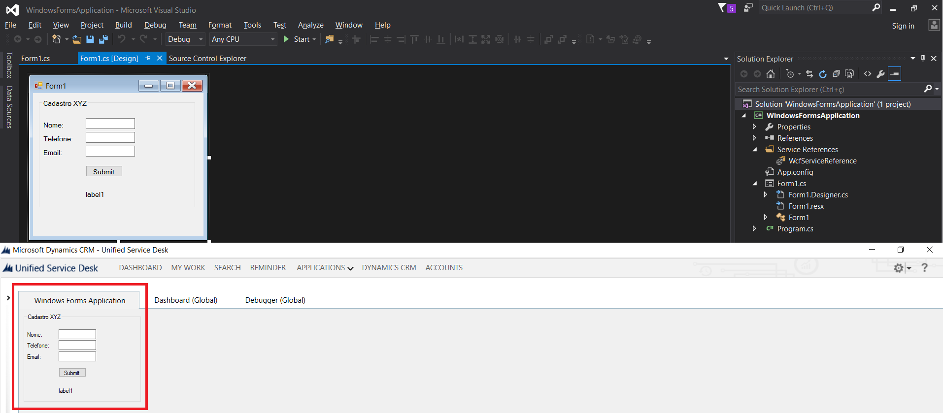 1 – Aplicação Externa (Windows Form) sendo aberta dentro do USD
