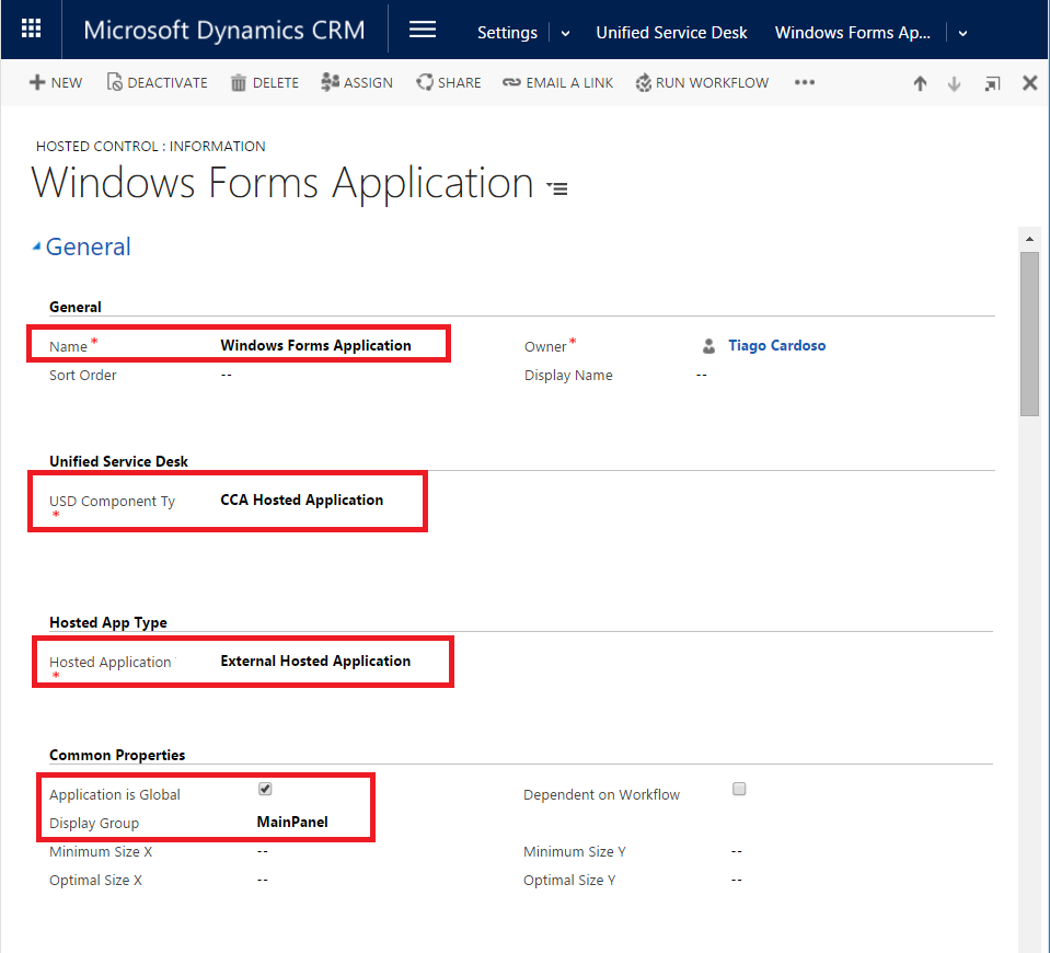 Bom, para inserir a aplicação externa, primeiramente devemos criar um hosted control (Configurações > Unified Service Desk > Hosted Controls > Novo). Devemos informar obrigatoriamente informar: