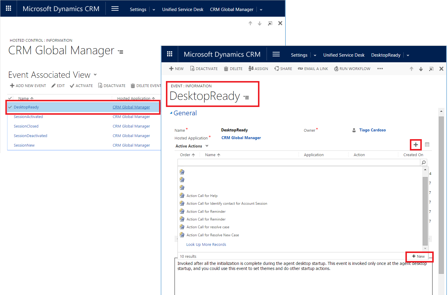 Abra o registro “DesktopReady” e no grid “Active Actions”, clique em adicionar um novo: