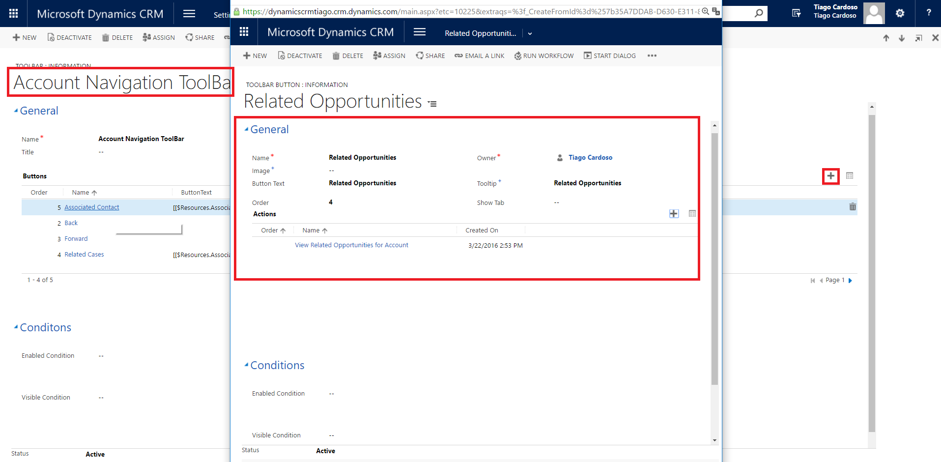 Precisaremos criar um Hosted Control do tipo “CRM Page”, uma UII Action para possibilitar ao hosted control a ação de “Navigate”, um botão “Related Opportunities” no Toolbar “Account Navigation ToolBar” e uma Action Call para fazer a consulta das oportunidades relacionadas ao clientes que está sendo atendido.