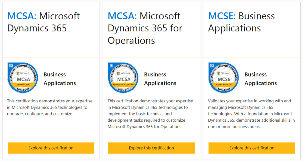 Como pre-requisito número principal, devemos ter obtido uma certificação MCSA (Microsoft Dynamics 365 ou Microsoft Dynamics 365 for Operations)