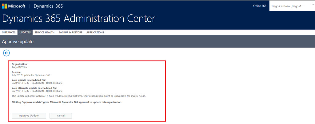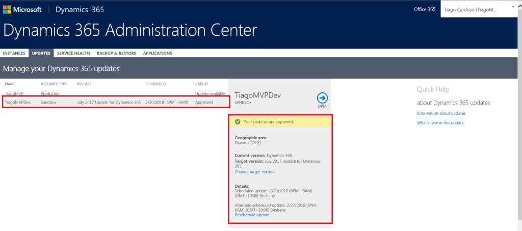 Repassando e traduzindo um pouco do que o time da Microsoft publicou há dois atrás (15/01/2018). Desde este dia, podemos agendar quando nossas organizações Online do Dynamics 365 serão atualizadas para a versão 9.0!