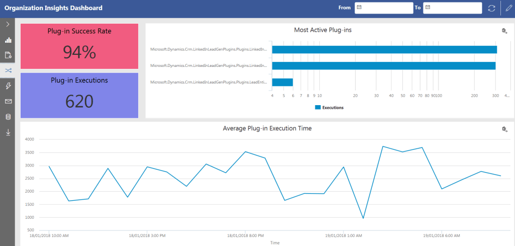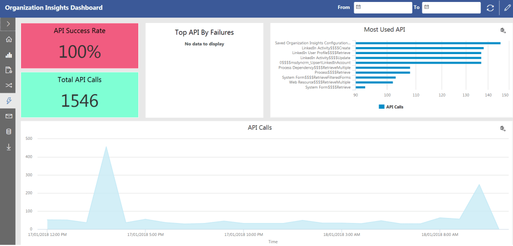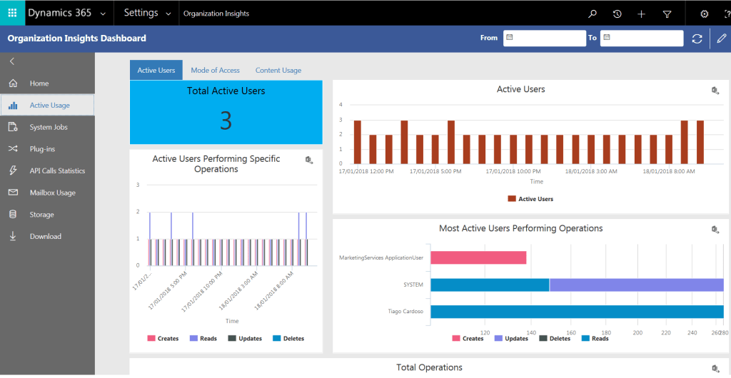 Organization Insights apareceu pela primeira vez em modo “preview” no final do ano passado (2017), para apenas versões do Dynamics 365 Online e devem ser iguais ou superiores à 8.1.1. Para adquirirmos o componentes, devemos adicionar a App via Microsoft.AppSource.