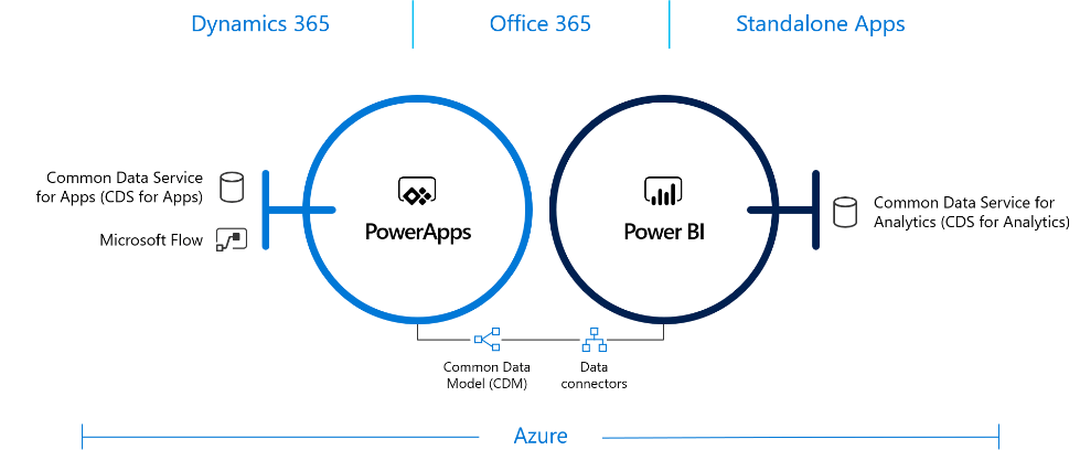 Continuando com a leitura, as informações vão se desenrolando e no fim fica claro que na verdade nem o PowerApps nem o Dynamics 365 estão se fundindo em uma única aplicação, mas sim compartilham uma única e comum camada de dados disponibilizada em forma de serviços, o CDS!
