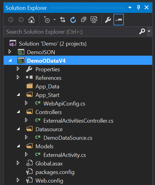 O primeiro passo é ter/criar a API que será consumida pela entidade virtual. Neste exemplo, para utilizar o provider nativo (OData V4), precisamos que nossa API implemente este protocolo.