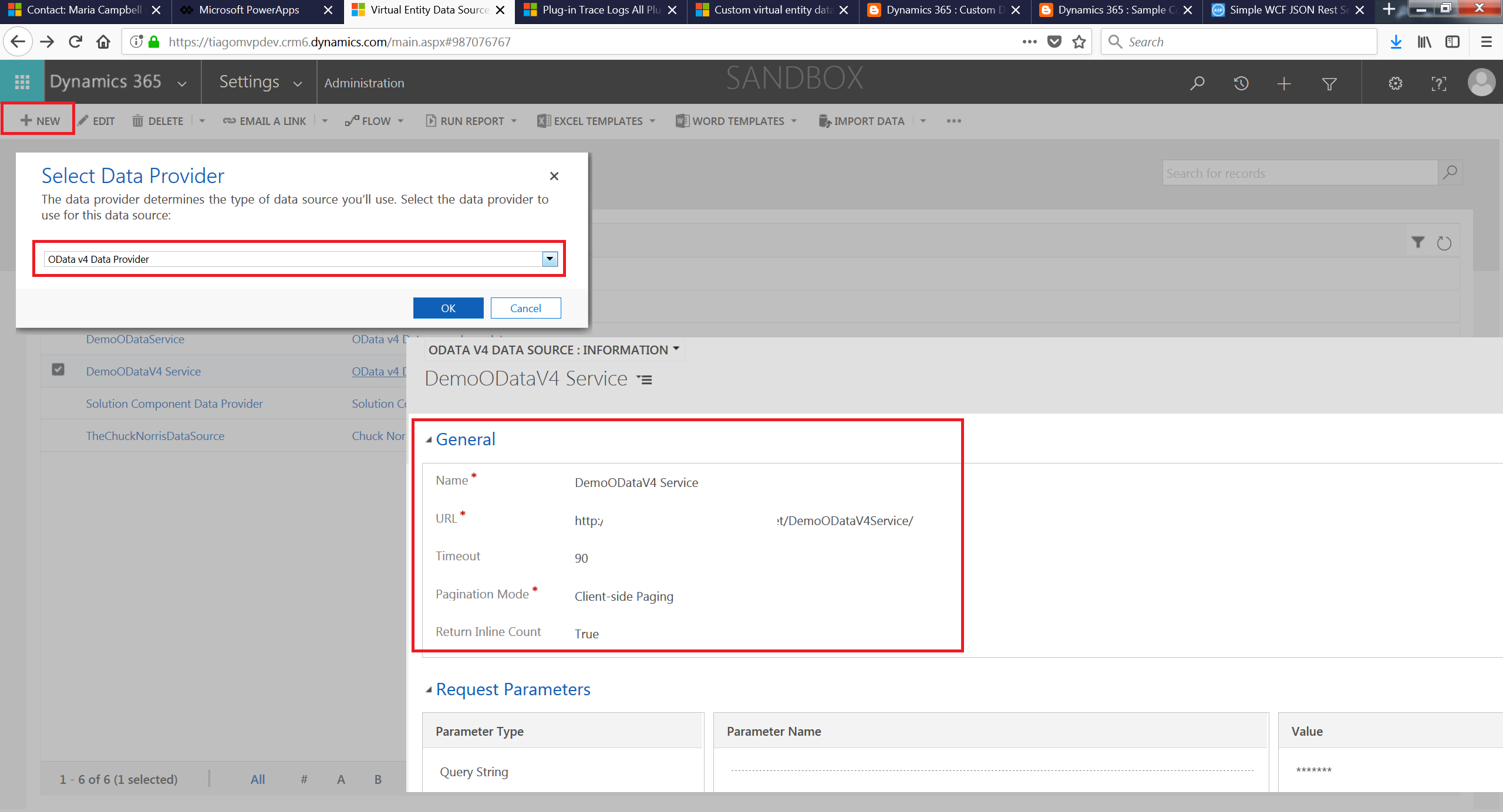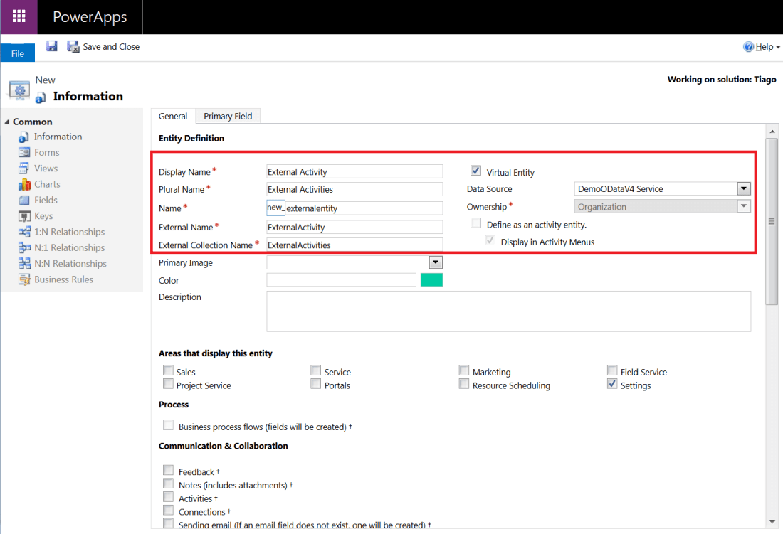 Vale lembrar aqui que se por exemplo sua API possui o seguinte endereço http://XXX/DemoODataV4Service/ExternalActivities, devemos apenas informar a http://XXX/DemoODataV4Service/, o nome do serviço será informado no momento da criação da entidade virtual!