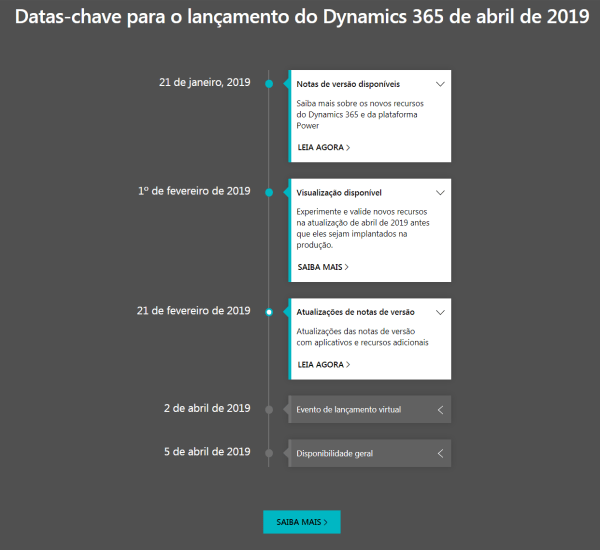 No dia 2 de Abril de 2019, a Microsoft fará um evento virtual de lançamento do release, toda a comunidade de Dynamics está mais do que convidada. Para isso, cadastre-se aqui!