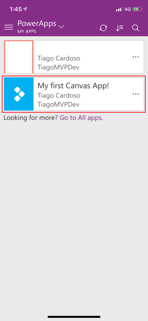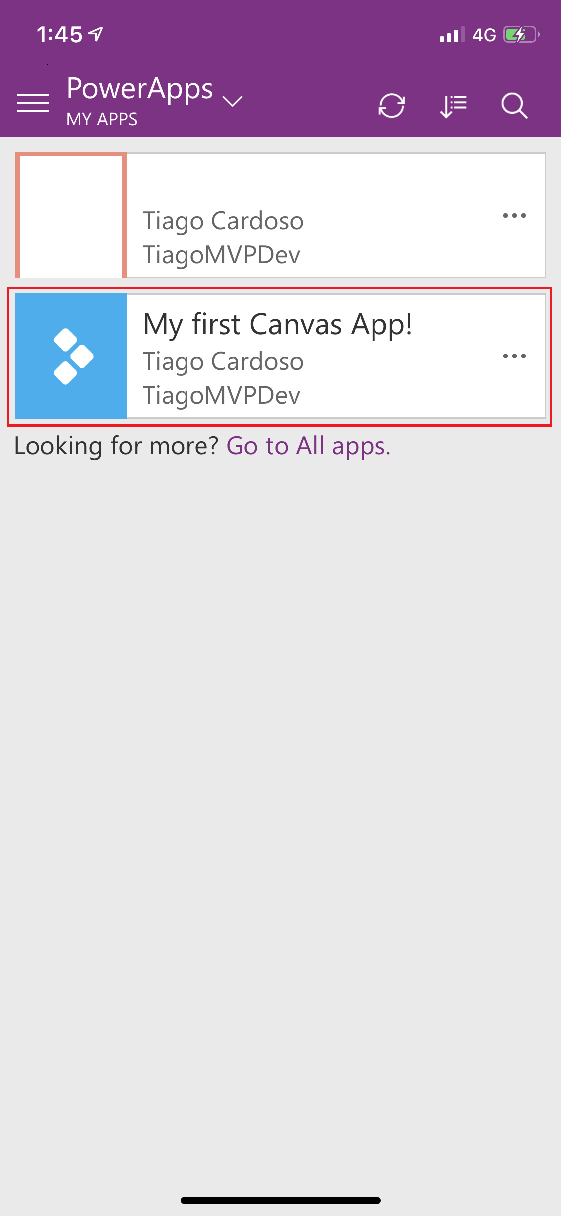 Para acessá-la em seu dispositivo móvel, você precisa baixar a app do PowerApps primeiro: