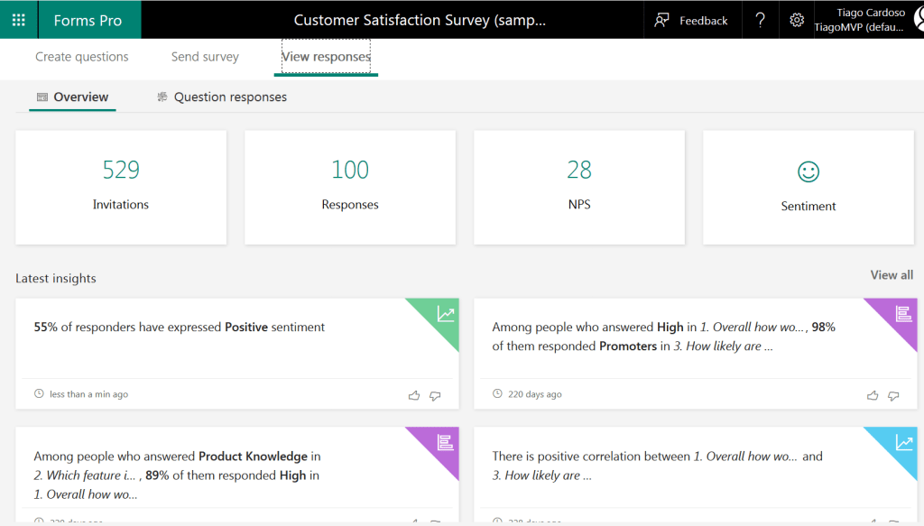 O Microsoft Forms Pro é uma aplicação que entrou na suite do Office 365, sendo assim é algo que irá proporcionar uma integração com toda a plataforma Office 365. Indo para o mundo Dynamics 365, podemos pensar que trata-se de evolução (guardada as proporções) do Voice of Customer (VoC), app do Dynamics 365 que está conosco há alguns anos.