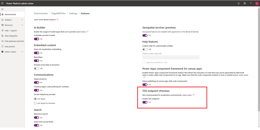Pronto, TDS endpoint foi habilitado, assim podemos acessar a base do CDS!